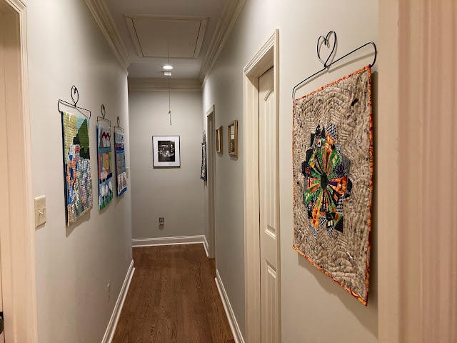 Here is the poster panel. I machine quilted on the longitude lines and around the rows of posters.