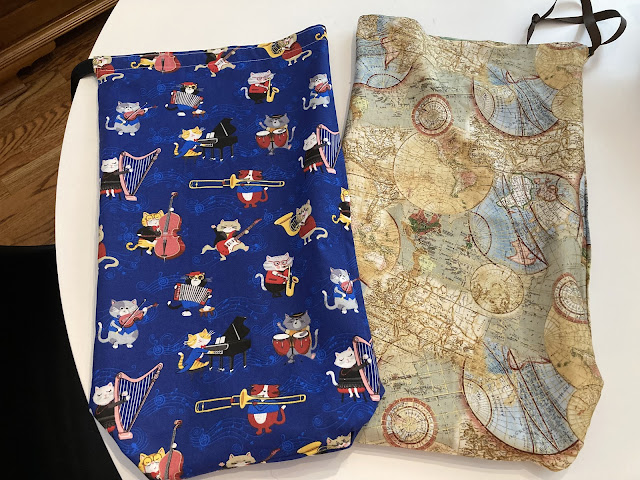 I made these two drawstring bags for the grandsons in NYC.